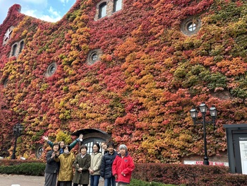 さみしい秋だったなぁ🥲そんな中、春の歌のスタッフが札幌ファクトリーの蔦の紅葉鑑賞に連れて行ってくれました😍赤く色づいた壁が素晴らしいです👍今あるものや、できることをいろいろ考えてみんなを笑顔にできるってすごい❣️